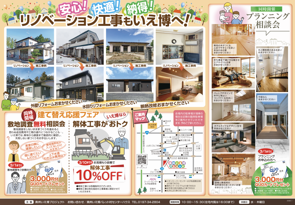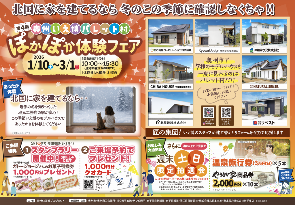 奥州いえ博パレット村では「ぽかぽか体験フェア」のスタンプラリーを開催しております。